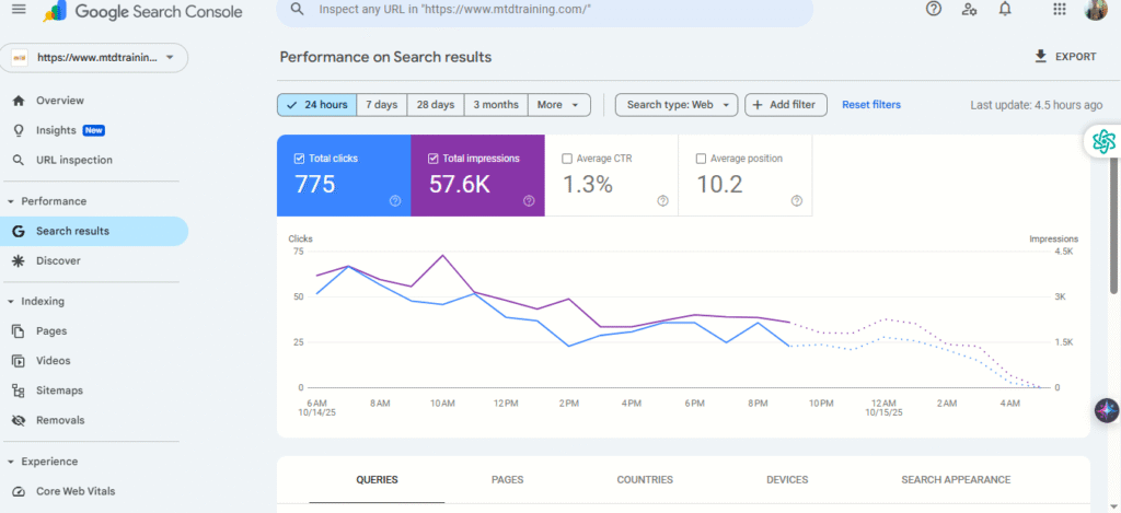 Through strategic Monthly SEO Services, we achieved significant organic growth, culminating in 775 Total Clicks and an impressive 57.6K Total Impressions for the client’s search results. By optimizing content and technical factors, we maintained a highly visible Average Position of 10.2 (top of the second page) while ensuring a competitive Average CTR of 1.3% across key search queries. This demonstrates our commitment to driving high-quality organic traffic and building sustainable search visibility for long-term business success.