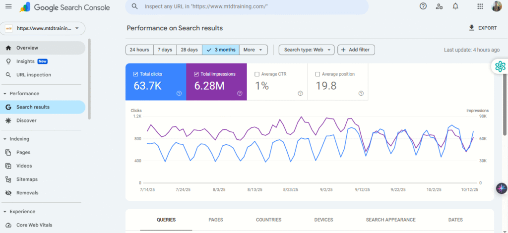 Our three-month SEO strategy established deep, lasting search authority, yielding an outstanding 63.7K Total Clicks and 6.28 Million Total Impressions across highly competitive terms. By executing persistent technical and content optimization, we secured massive reach while maintaining a solid Average Position of 19.8 and a high-converting 1% Average CTR. This sustained performance proves our methodology scales traffic exponentially, transforming search visibility into a reliable, long-term asset for the client.